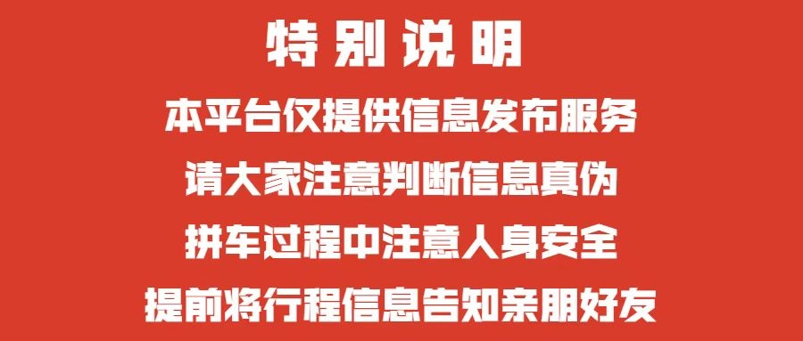 【免责声明】:建议司机和乘客必看,以免被骗!本平台不对任何人提供任何形式的担保,所有信息仅供参考,不...